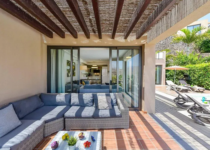 Villan med 2 sovrum och 2 badrum har ett utmärkt läge cirka 10 minuters bilresa från Salobre Golf Course och cirka 15 minuters bilresa från Meloneras Golf.